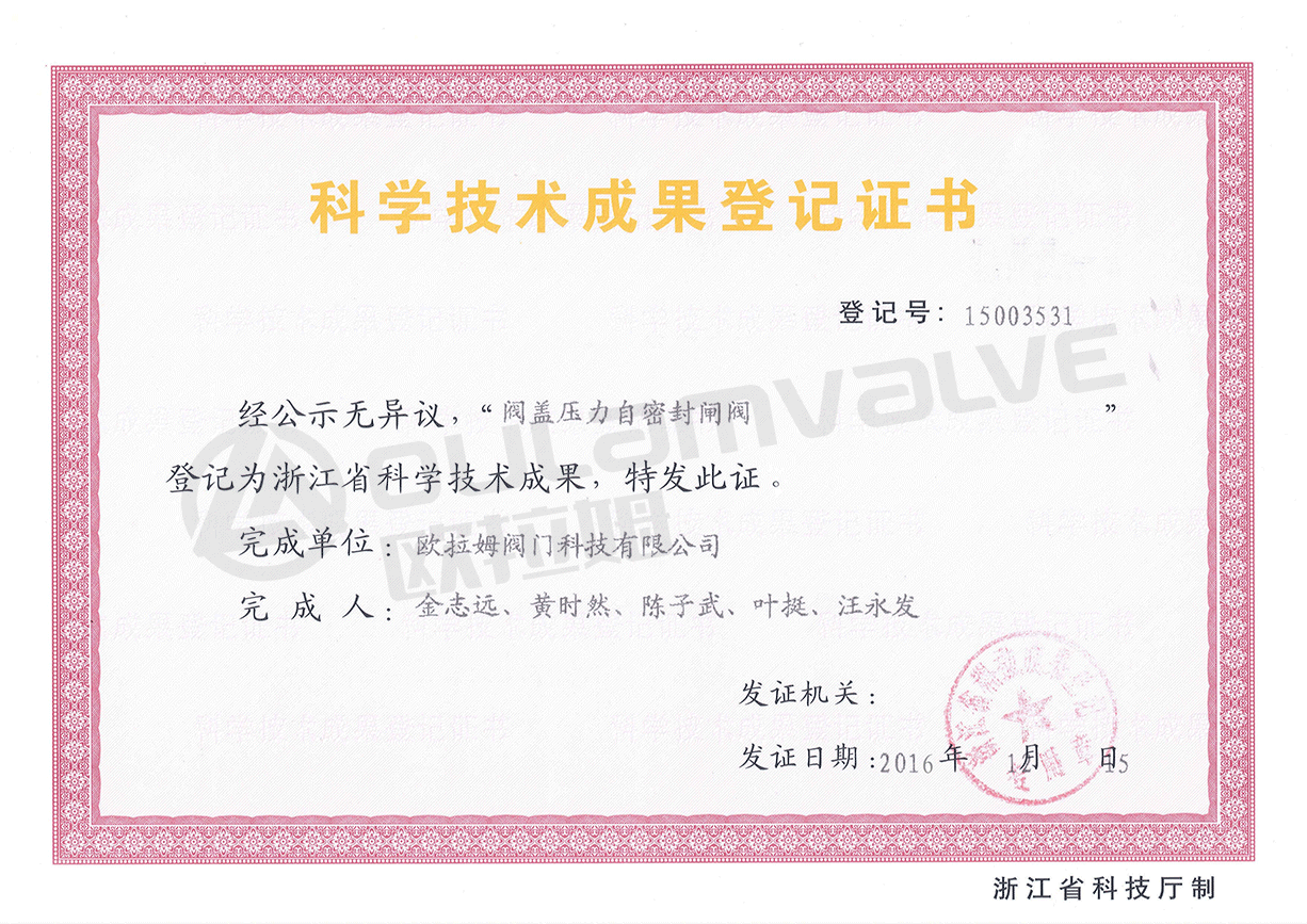 浙江省科學(xué)技術(shù)成果科學(xué)技術(shù)成果:閥蓋壓力自密封閘閥